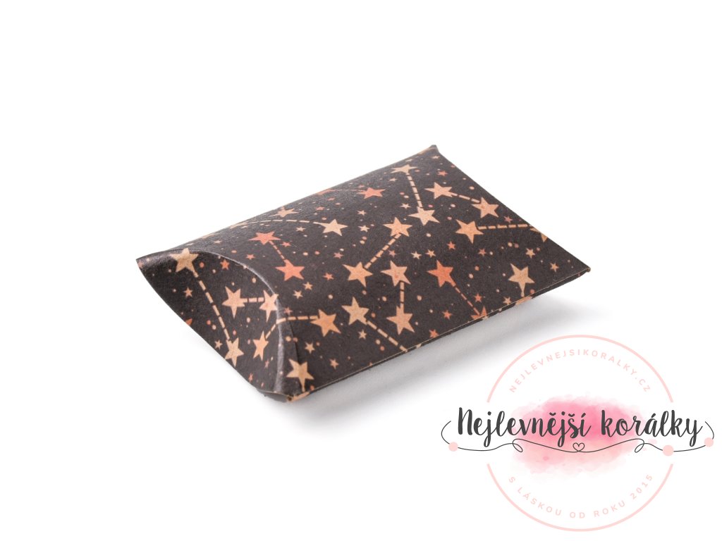 Dárková krabička v hnědém provedení s obrázkem hvězd a jejich spojení je vyrobena z tvrdého papíru.