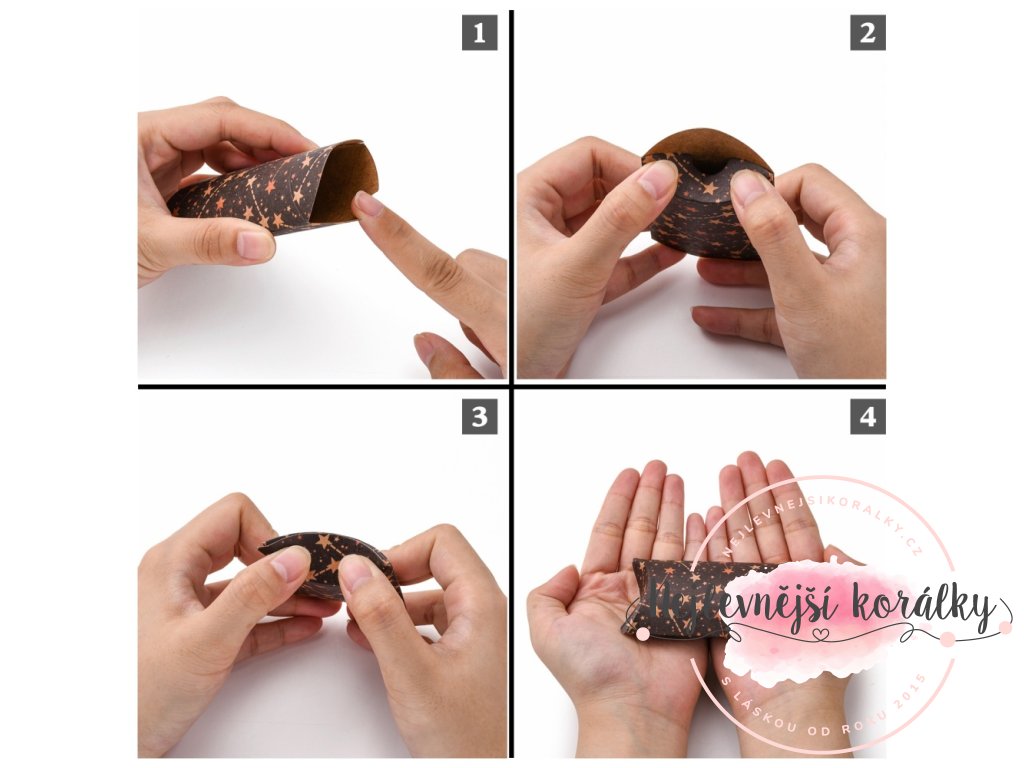 Zabalte svůj výtvor nebo dárek stylově s naší skládací papírovou dárkovou krabičkou s hvězdami. Hotová krabička o rozměrech 8 cm na délku, 5,5 cm na šířku a 2 cm na hloubku je perfektním řešením pro drobné dárky.