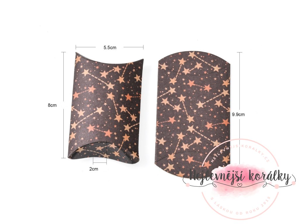 Skládací papírová dárková krabička - hnědá - hvězdy - 8 x 5,5 x 2 cm - 1 ks