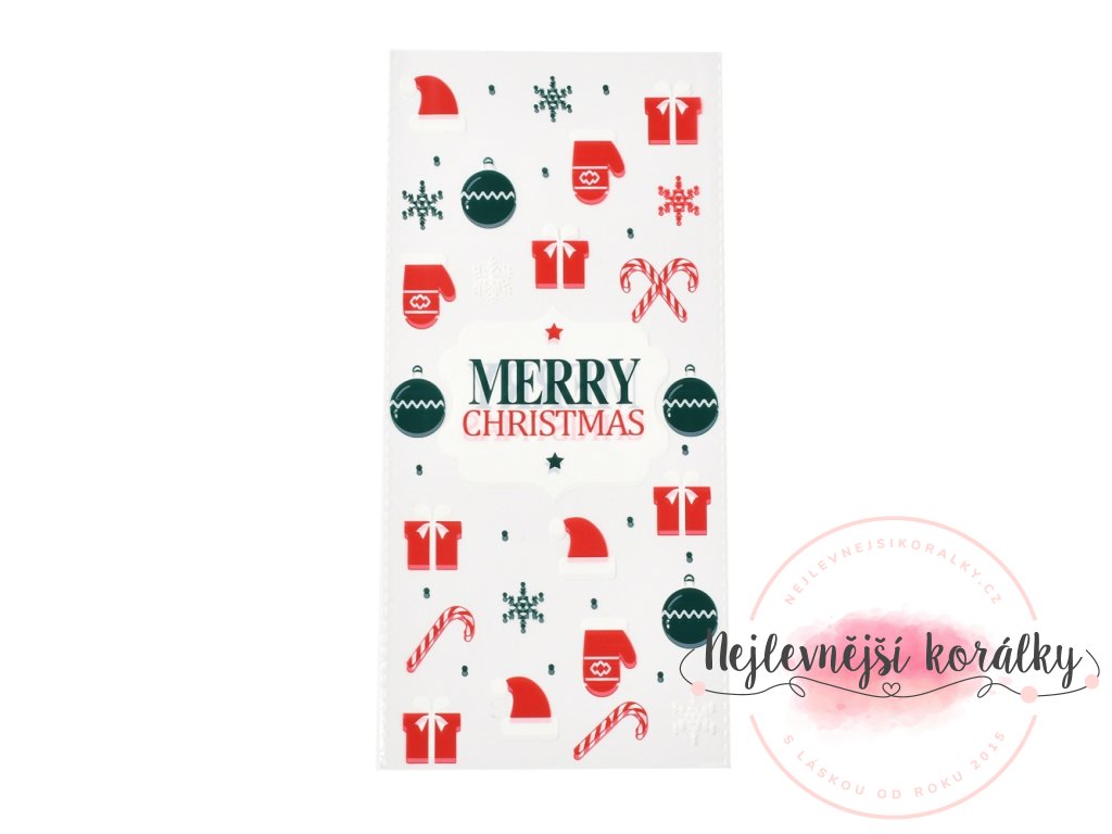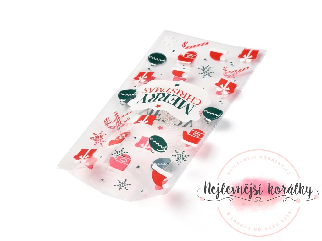 Kvalitní sáček vyrobený z transparentní polypropylenové fólie o délce 27 cm a šířce 13 cm s motivem Vánoc a nápisem "Merry Christmas".
