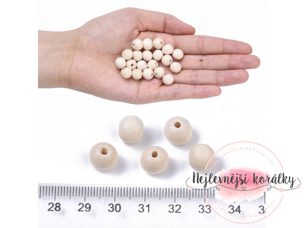 Dřevěné přírodní korálky z leštěného a nelakovaného dřeva o velikosti 6 mm s velikostí průvleku 2-3 mm.