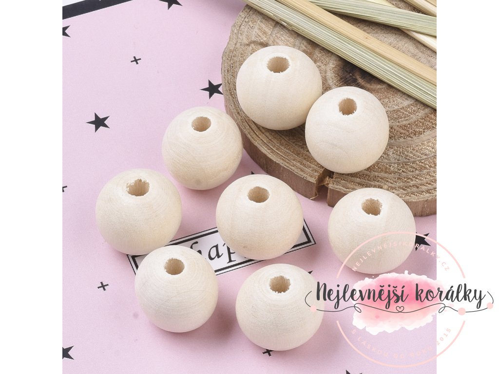 Dřevěné přírodní korálky z leštěného a nelakovaného dřeva o velikosti 8 mm s velikostí průvleku 2,5 mm.