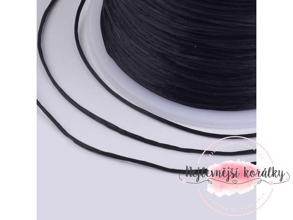 Vysoce elastický materiál v černém provedení je tenký, plochý a lze jím provlékat korálky i vícekrát.