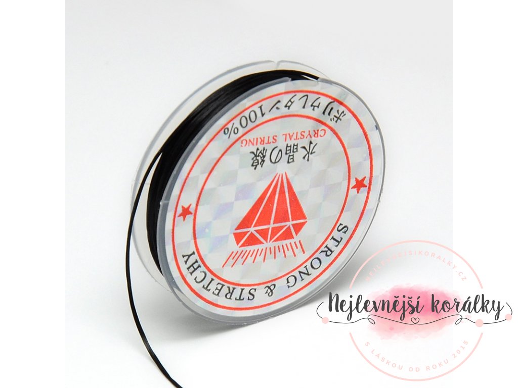 Vysoce elastický materiál v černém provedení je tenký, plochý a lze jím provlékat korálky i vícekrát.