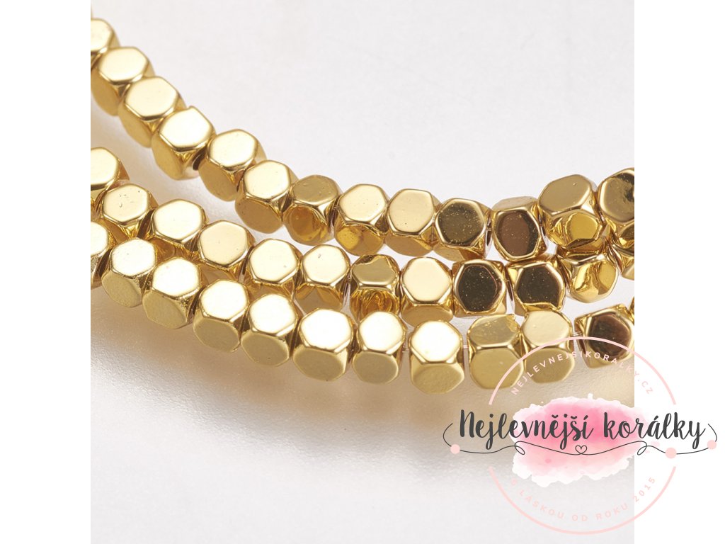 Syntetický hematit - kostička - broušená - 2 x 2,5 x 2,5 mm - zlatá - 1 ks