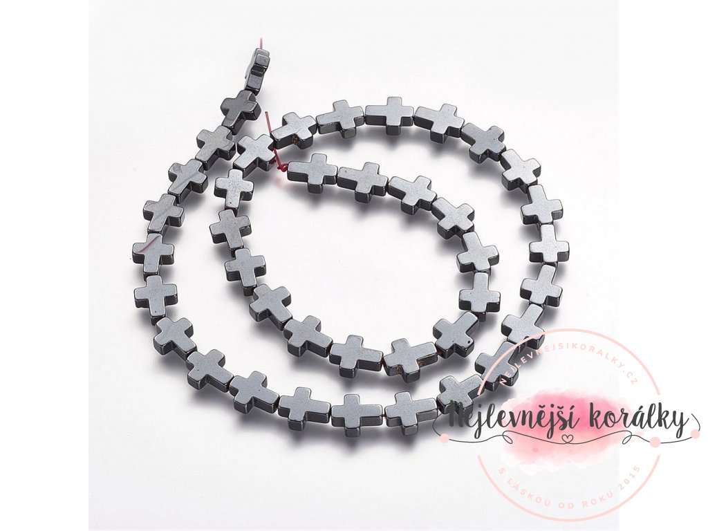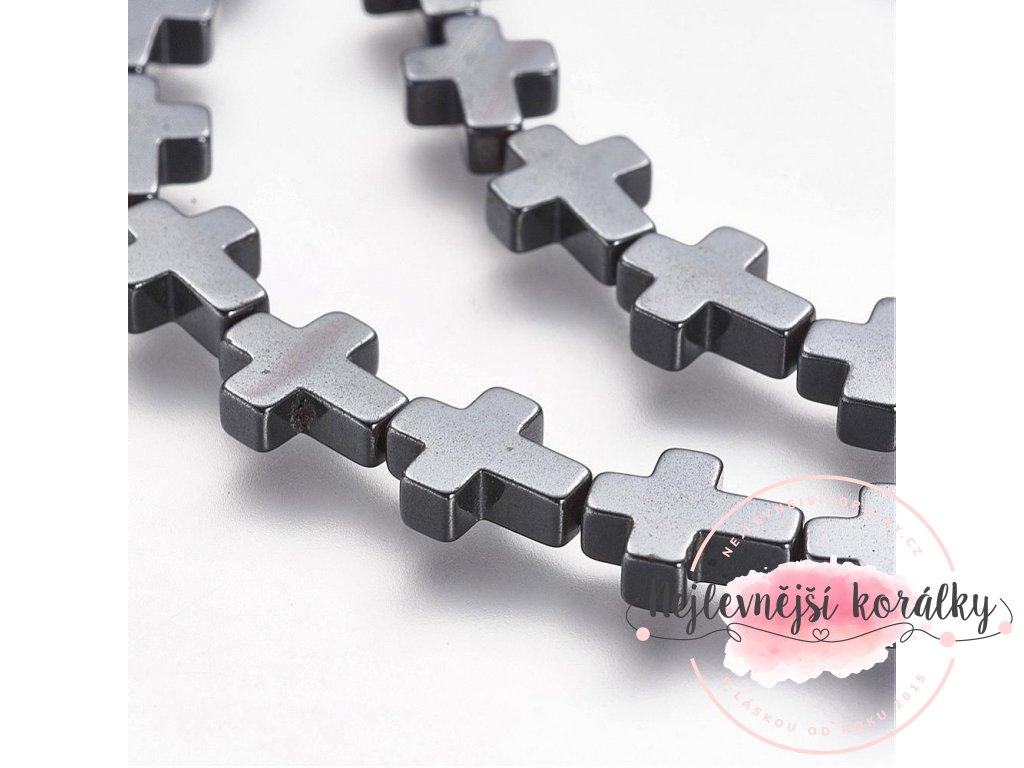 Korálky ze syntetického minerálu hematit ve tvaru kříže.