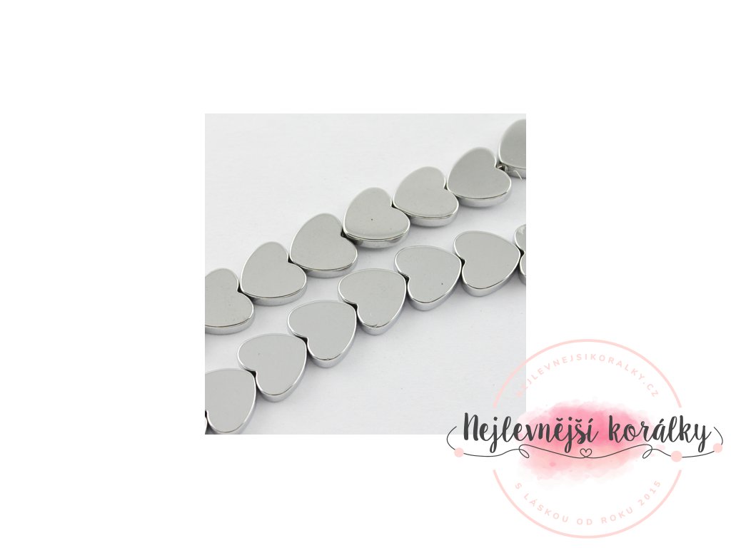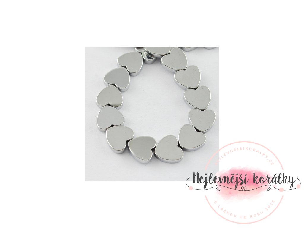 Syntetický hematit - srdce - 4 x 4 x 2 mm - platinové - třída A - 1 ks