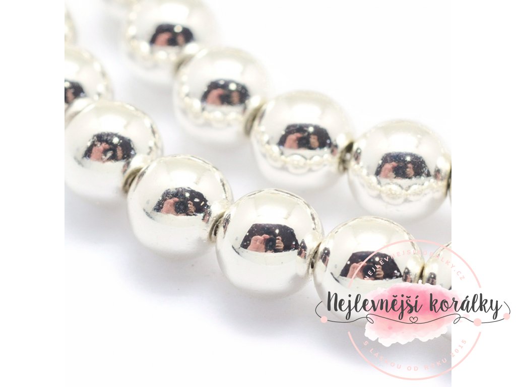 Korálky jsou syntetické a jsou dobarvovány pokovením do stříbrné barvy.