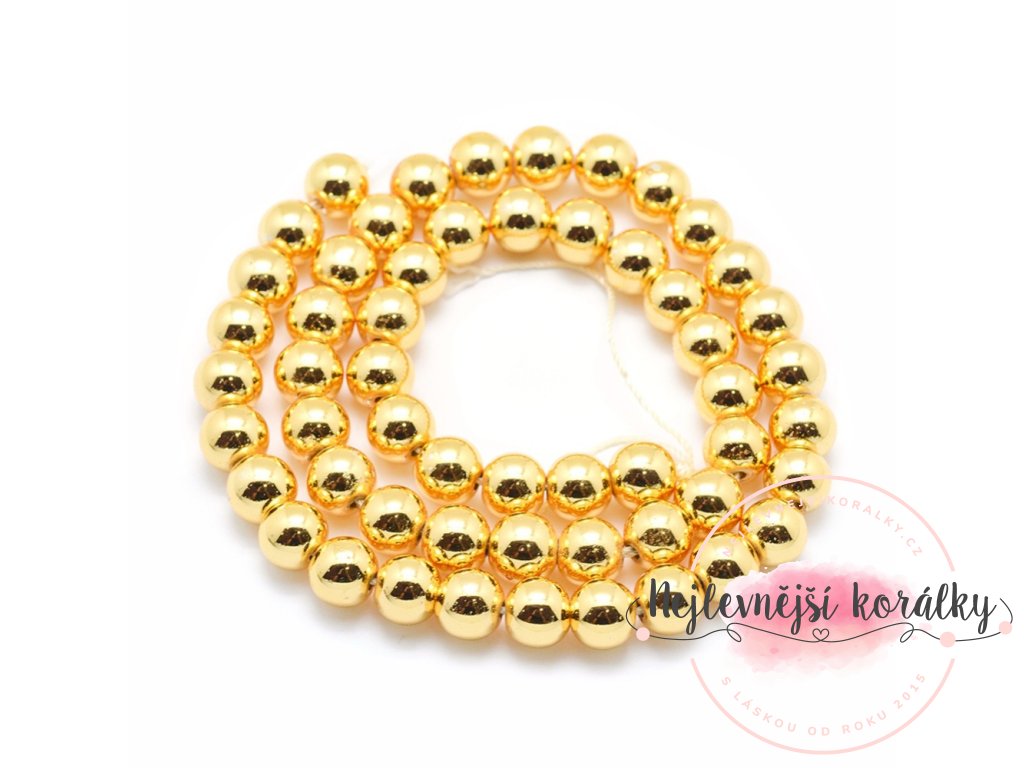 Korálky jsou syntetické a jsou dobarvovány pokovením do zlaté barvy.