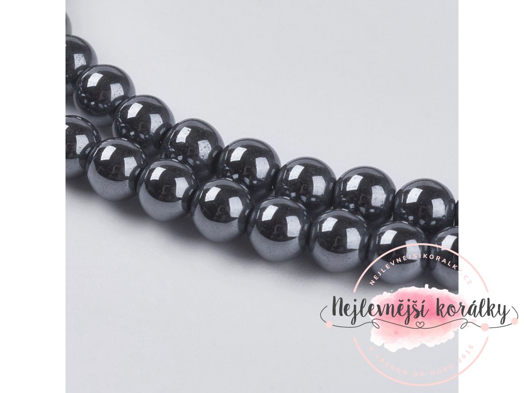 Korálky jsou syntetické a jsou dobarvovány pokovením do ocelově šedé barvy.