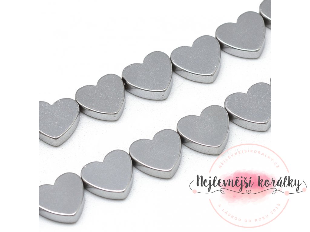 Korálky ze syntetického minerálu hematit ve tvaru srdce.