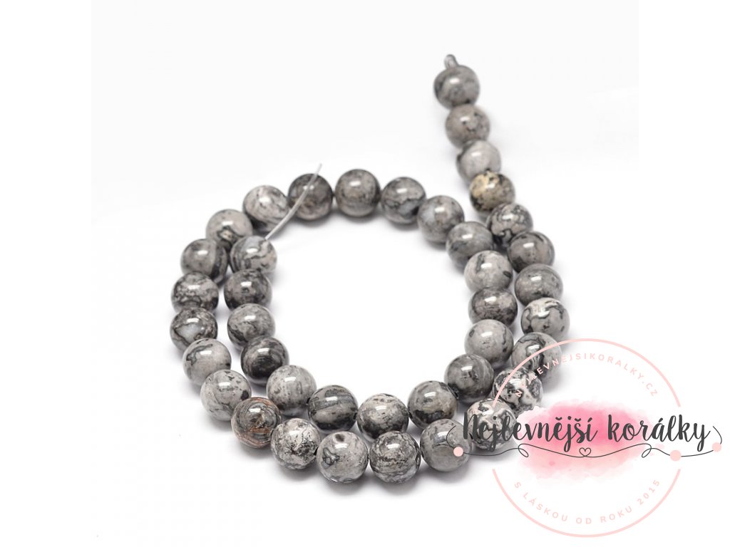 Přírodní korálky z minerálu jaspis Picasso, někdy zvaný mapový, nebo šedý jaspis.