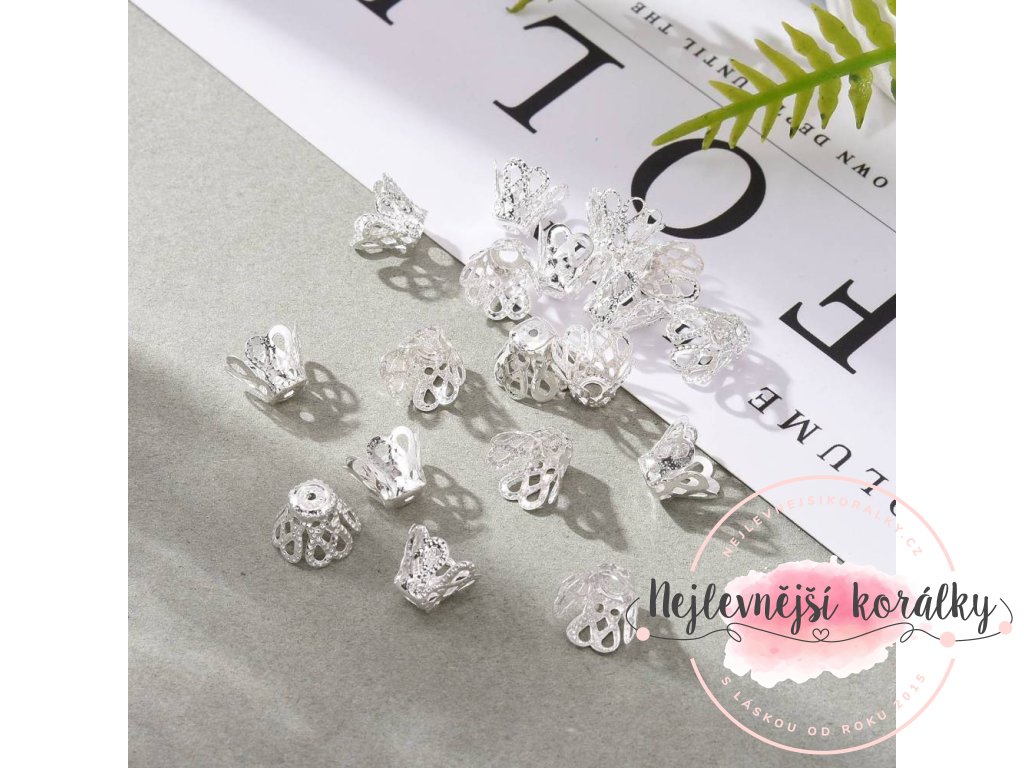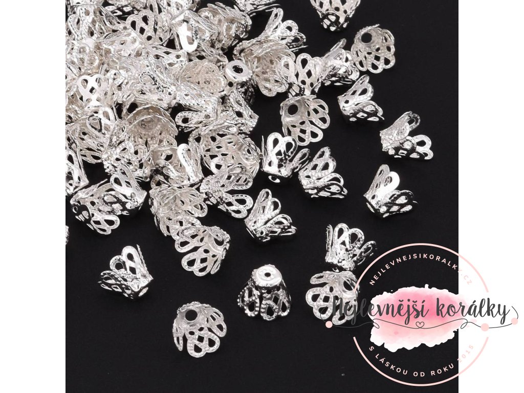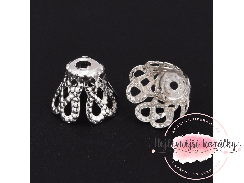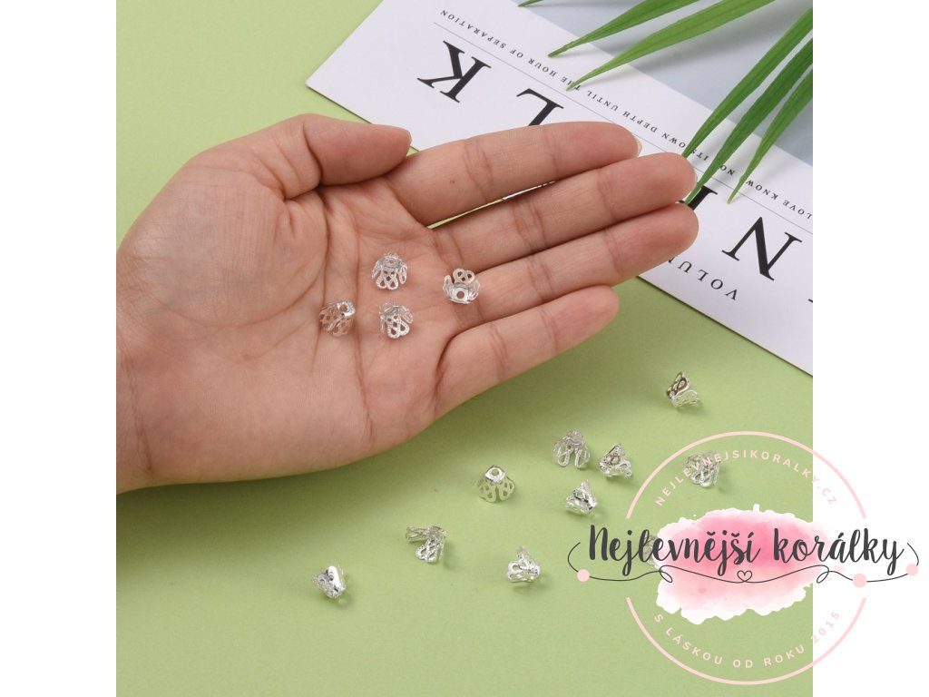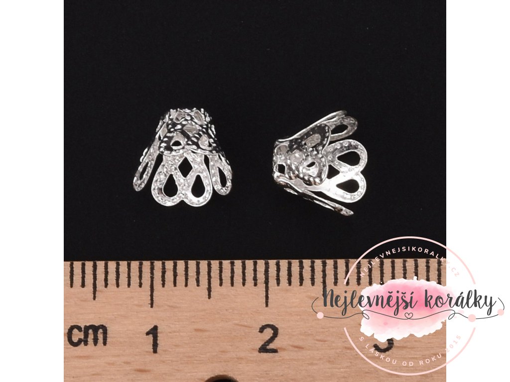 Kovový kaplík - květina - stříbrný - ∅ 7 x 9 mm - 1 ks