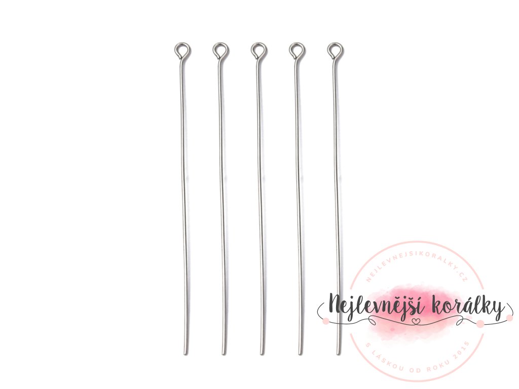 Ketlovací jehly z nerezové oceli typu 304 v platinovém provedení o délce 65 mm a hloubce 0,7 mm, s očkem s velikostí průvleku 2 mm.