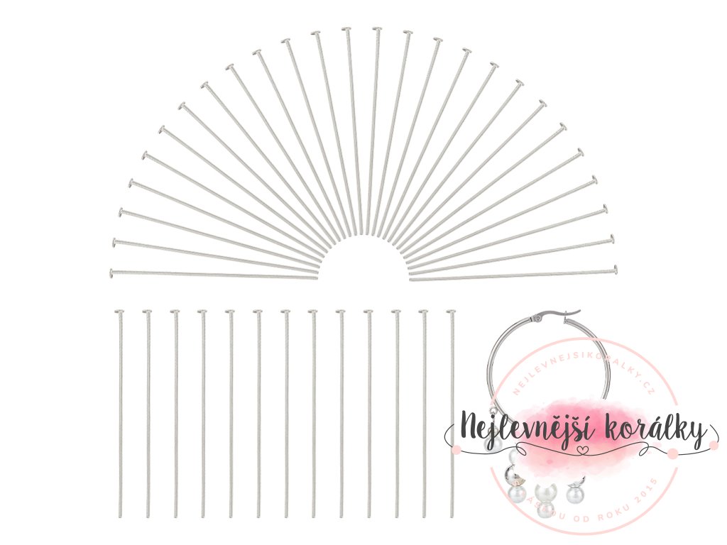 Ketlovací nýty z nerezové oceli typu 304 v platinovém provedení o délce 40 mm a síle 0,7 mm, s hlavičkou o velikosti 1,8 mm.