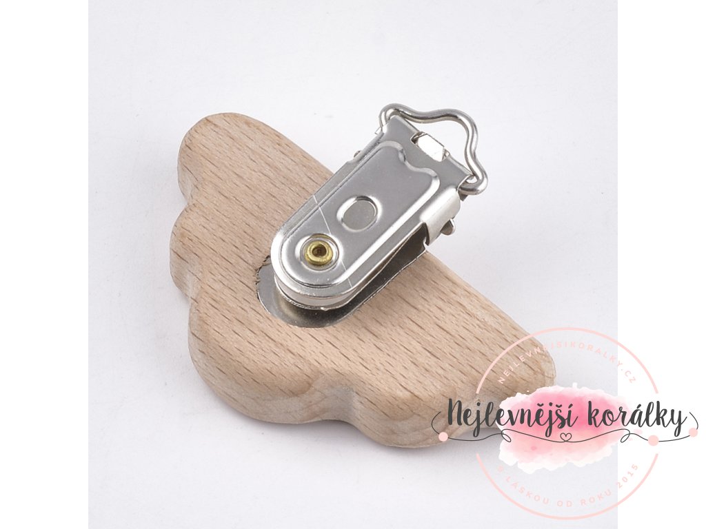 Dřevěný klip na dudlík - mráček - přírodní - 43 x 51 x 18 mm - 1 ks