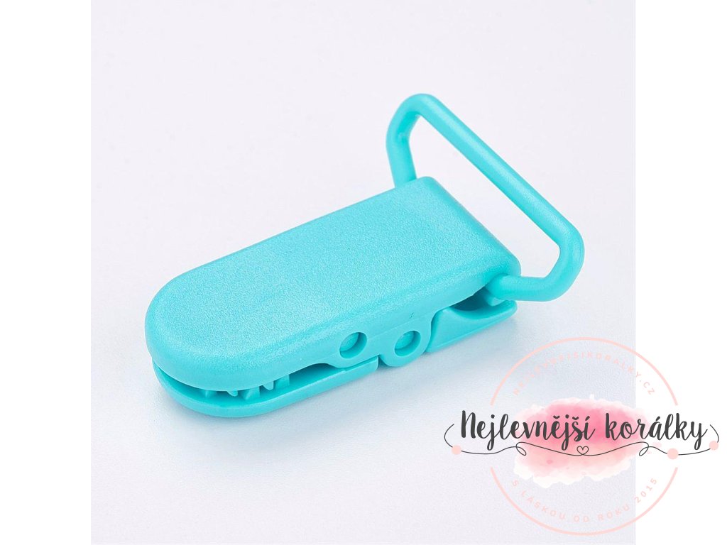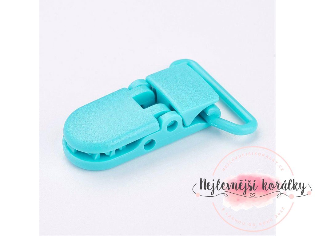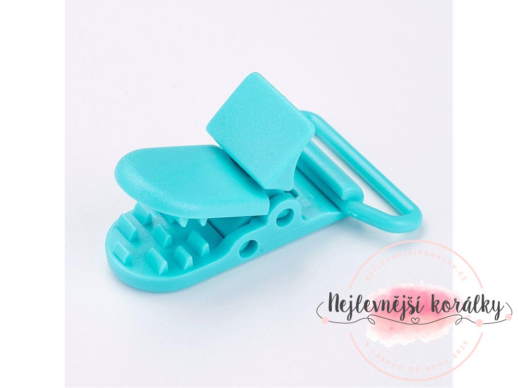 Plastový klip na dudlík - tmavě tyrkysový - 43 x 31 x 9 mm - 1 ks