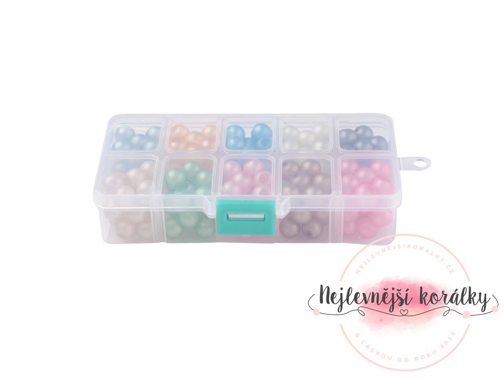Skleněné matné perleťové korálky - mix barev - ∅ 10 mm - krabička
