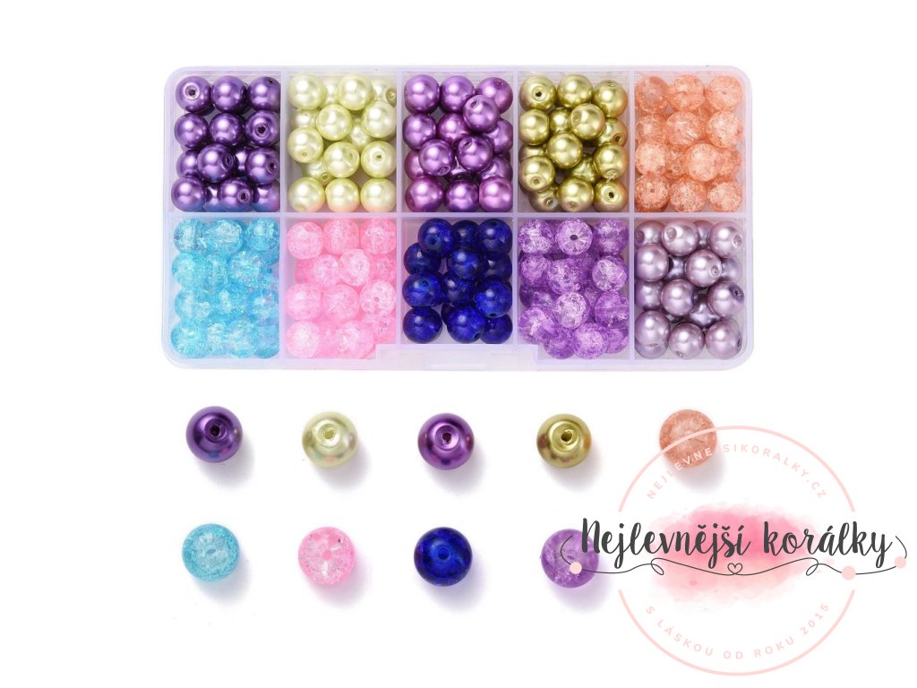 Skleněné voskované perly a praskané korálky - mix barev - ∅ 8 mm - krabička