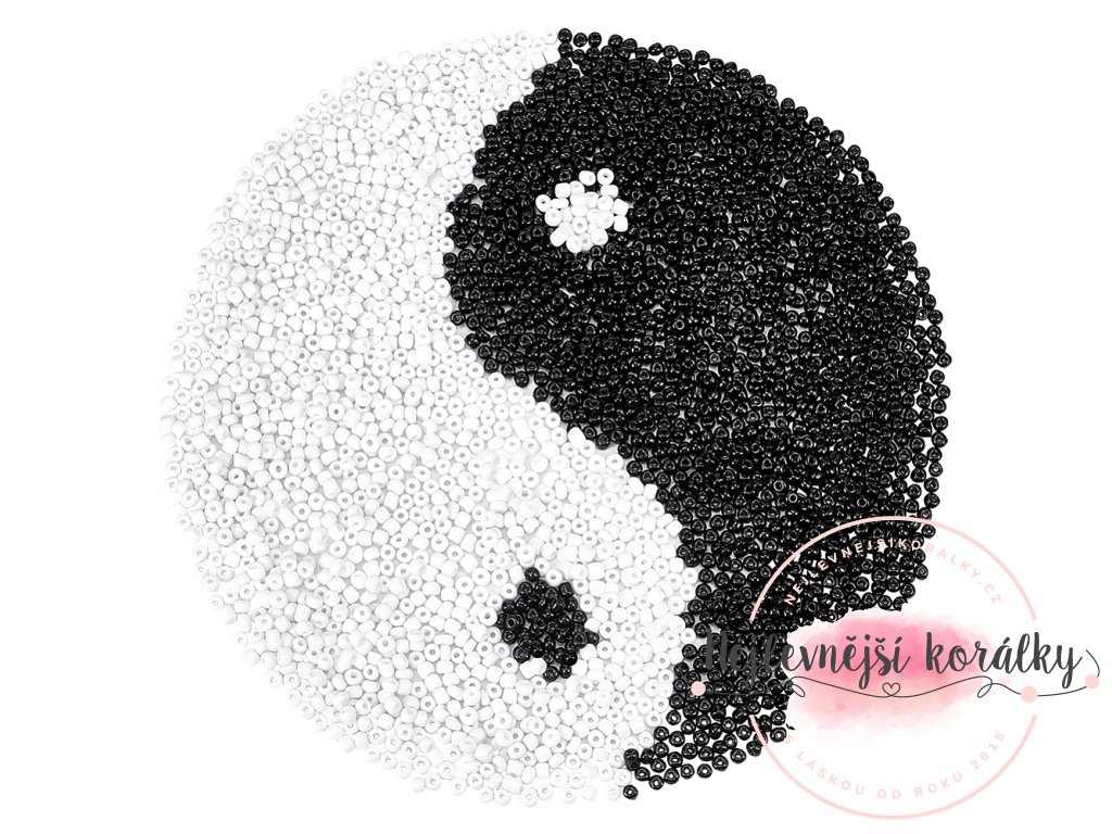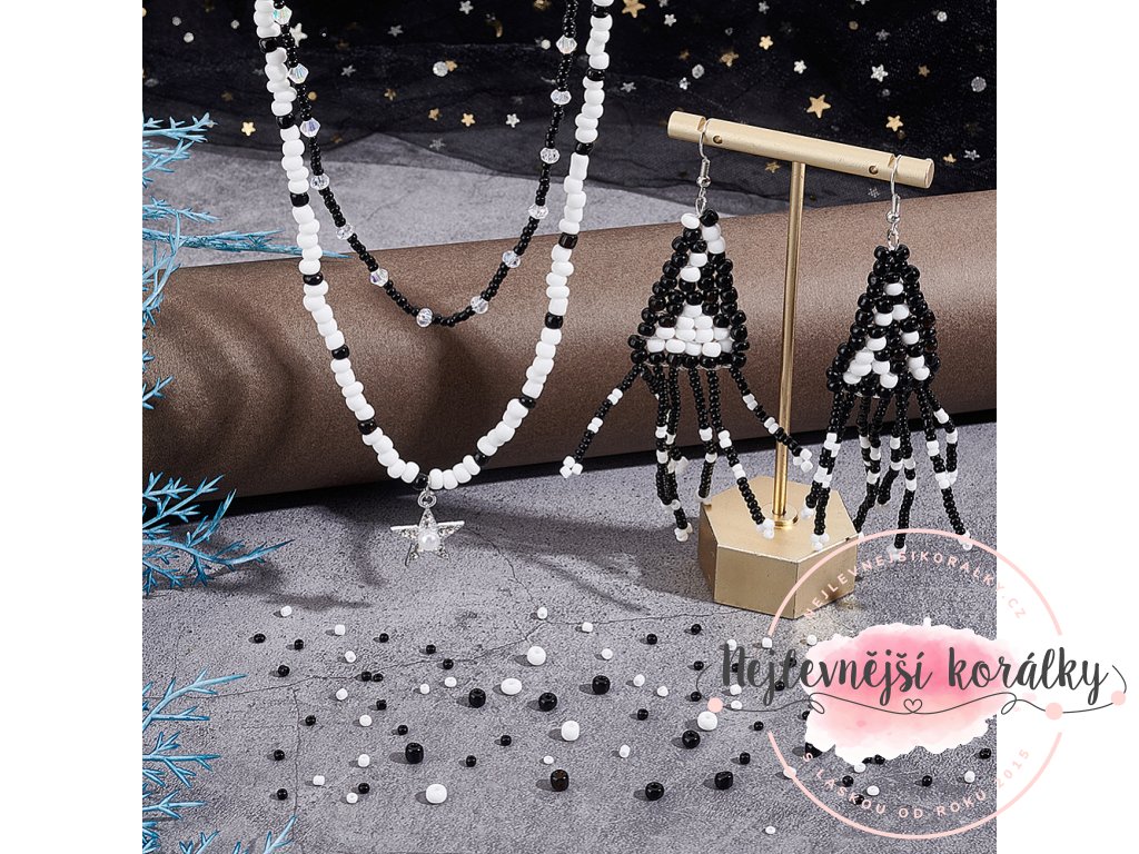 Skleněný rokajl - krabička - černá a bílá - 4 mm - 2 x 100g - 1 krabička