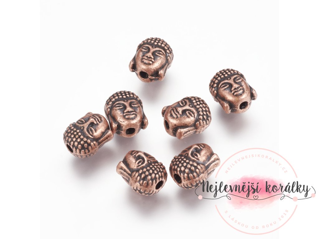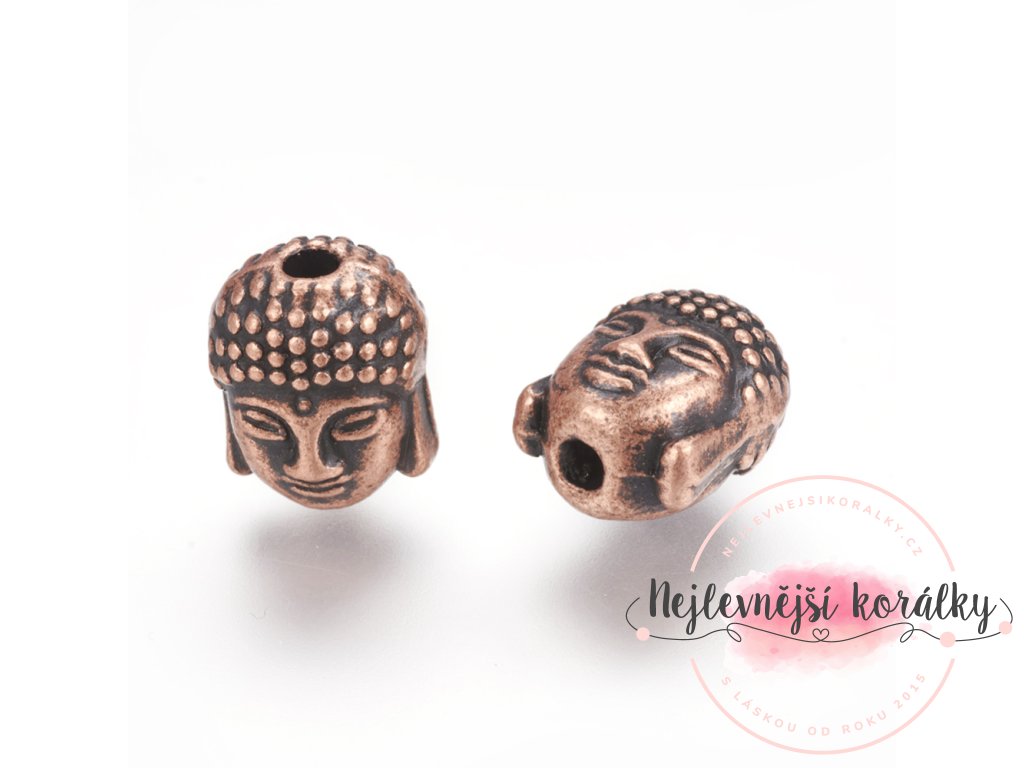Kovový korálek - Buddha - měděný - 10 x 9 x 8 mm - 1 ks