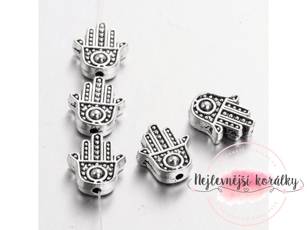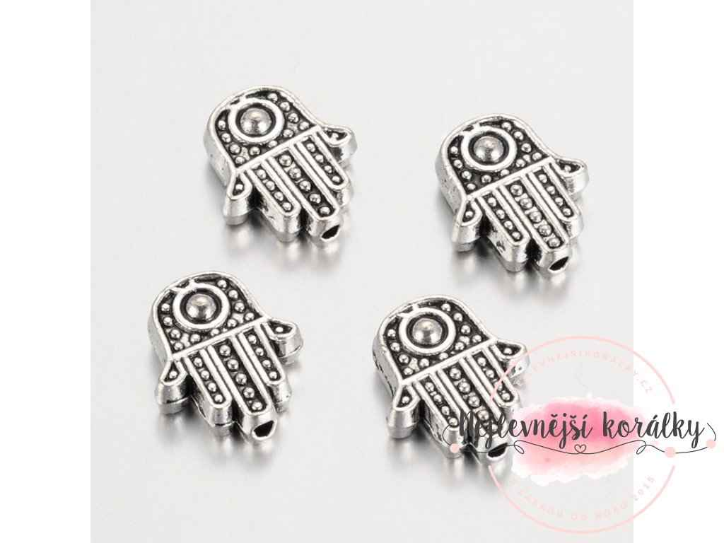 Kovový korálek - starostříbrný - hamsa - 12 x 10 x 4 mm - 1 ks