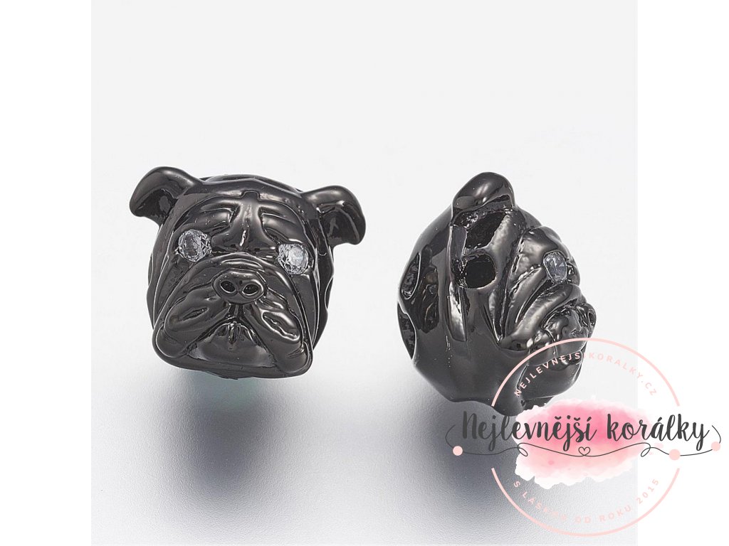 Mosazná hlava buldoka s kubickými zirkony - černá - 11,5 x 13,5 x 11 mm - 1 ks
