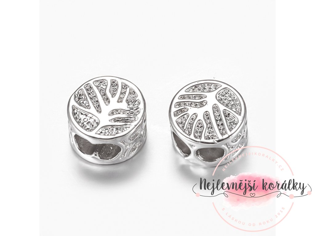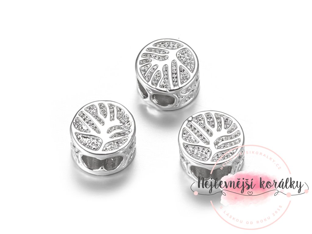 Mosazný korálek s kubickými zirkony - strom života - 8 x 5 mm - 1 ks