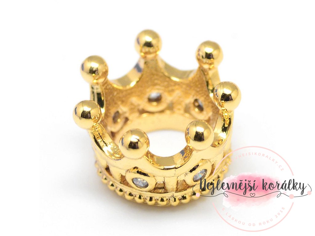 Mosazný oddělovací korálek s kubickými zirkony - různá provedení - koruna - ∅ 11 x 7 mm - 1 ks