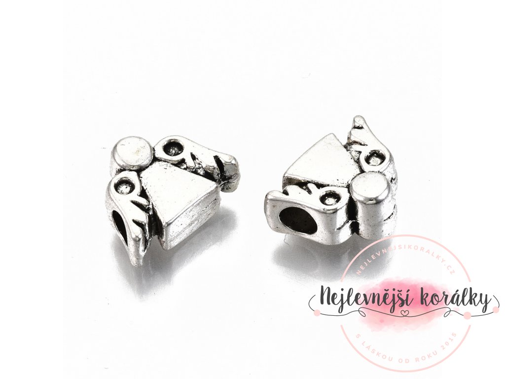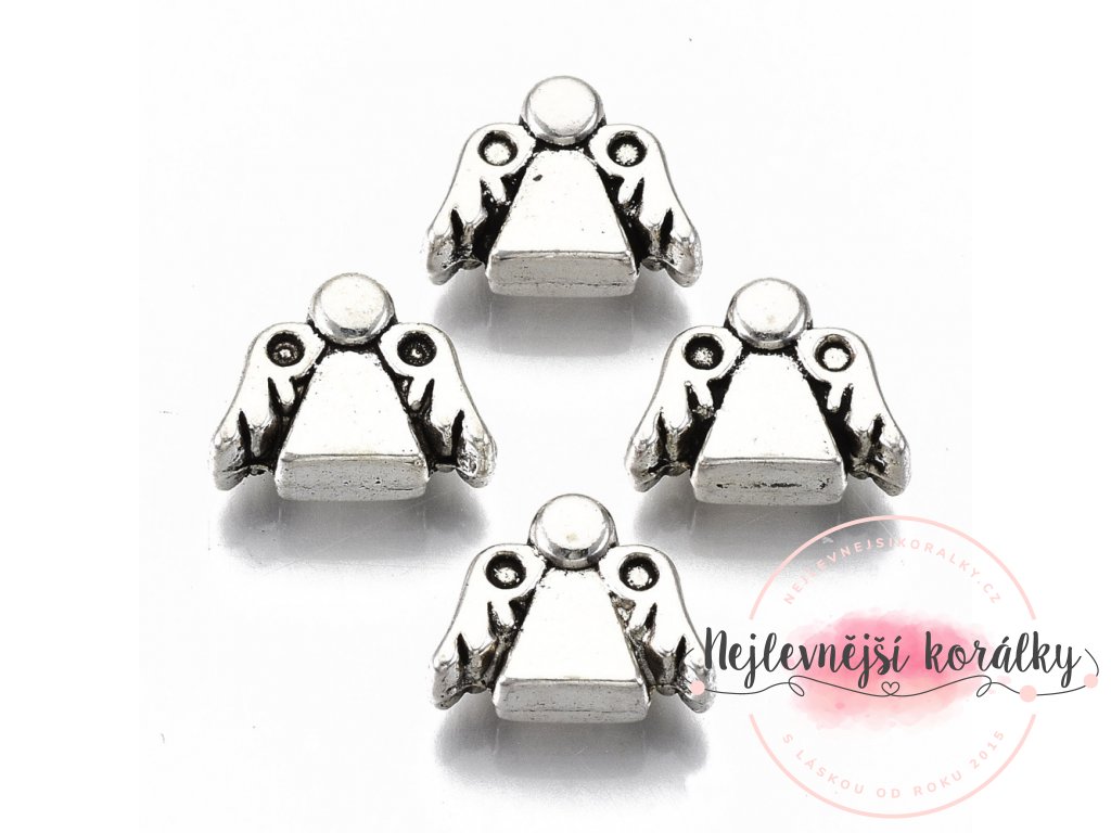 Korálek s širokým průvlekem - anděl - stříbrný - 13 x 11 x 8 mm - 1 ks