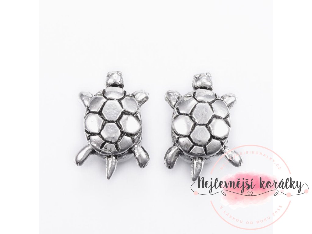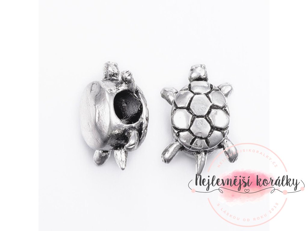 Korálek z nerezové oceli se širokým průvlekem - želva - starostříbrný - 17 x 11 x 9 mm - 1 ks