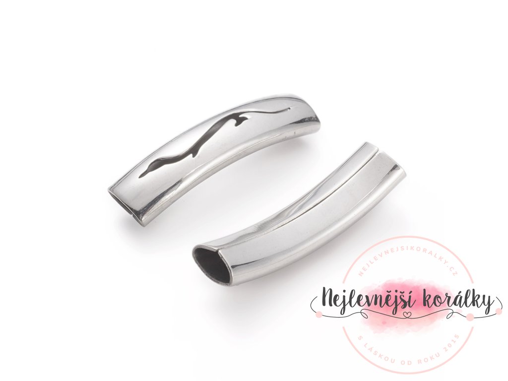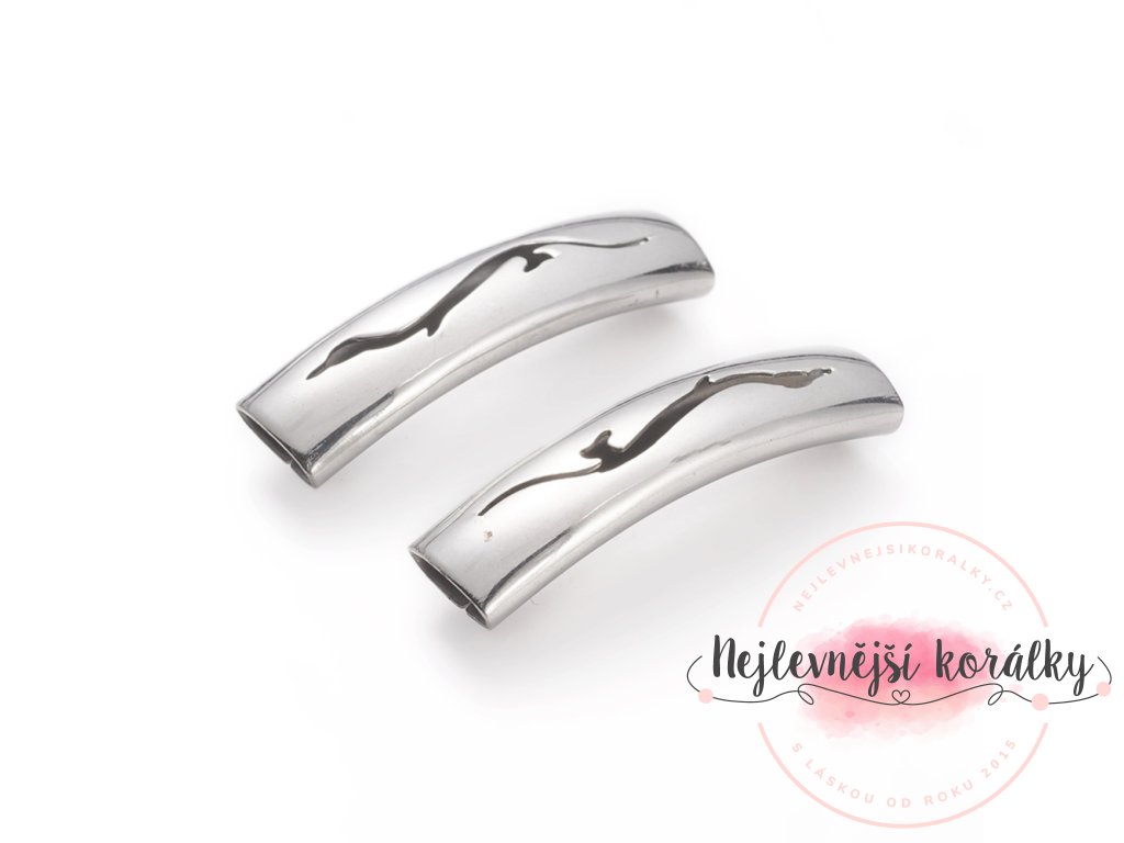 Trubičkový korálek z nerezové oceli - prohnutý - ještěrka - platinový - 36 x 10 x 8 mm - 1 ks
