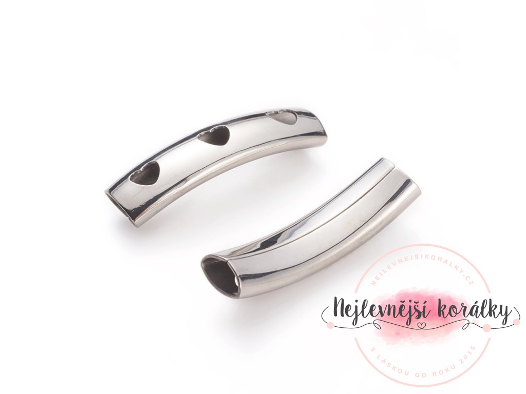 Kvalitní korálek ve tvaru prohnuté trubičky se srdíčkovými otvory