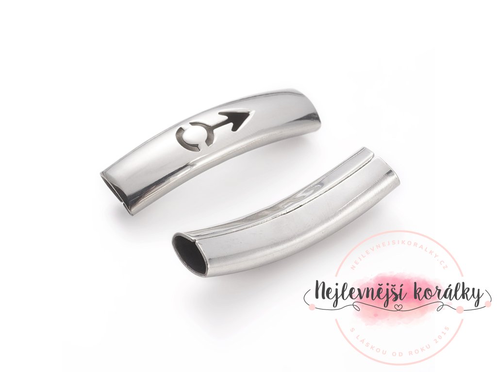 Trubičkový korálek z nerezové oceli - prohnutý - symbol muže - platinový - 36 x 10 x 8 mm - 1 ks