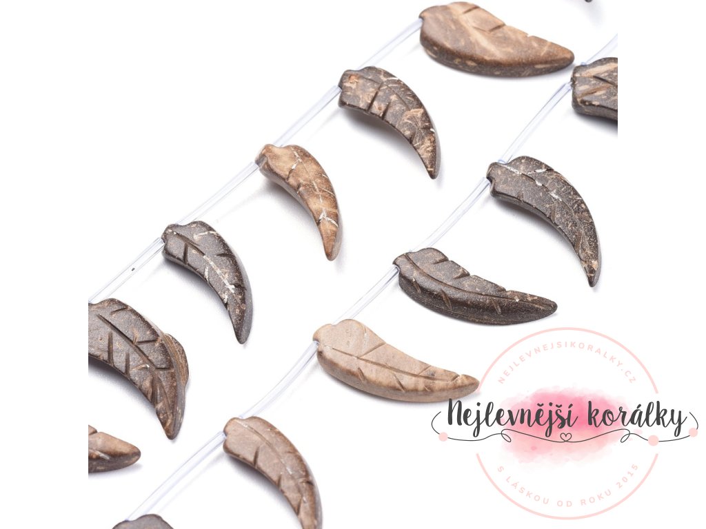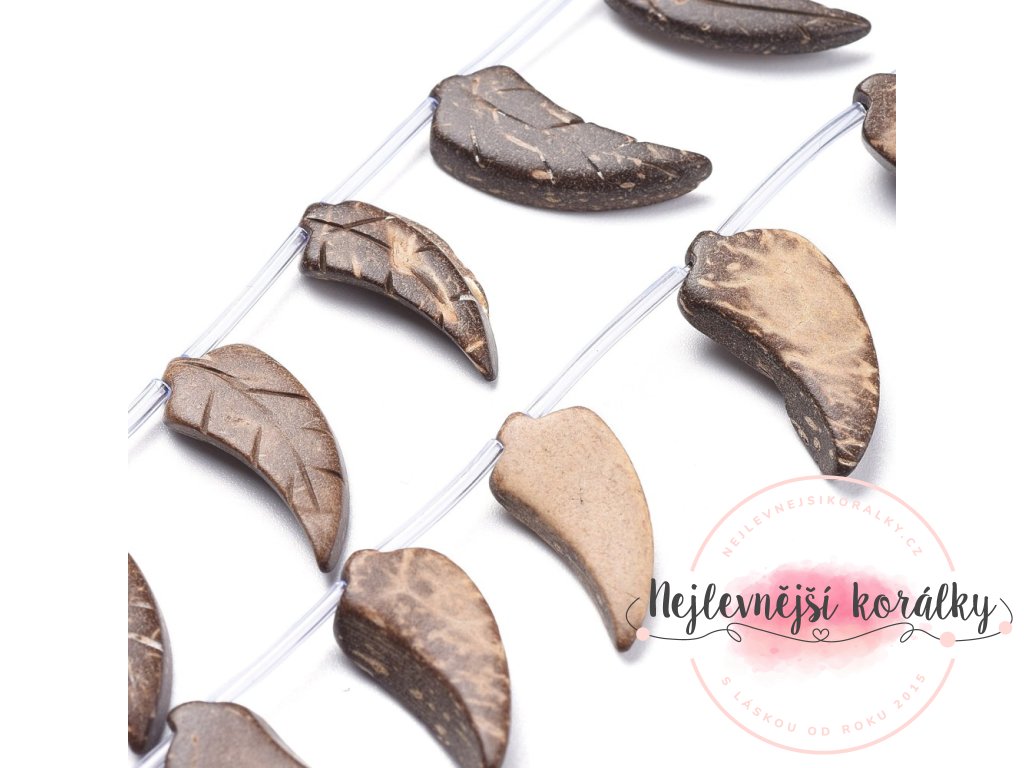 Kokosové korálky - přírodní - tvar listu 23-28 x 8-14 x 3-5 mm - 1 ks