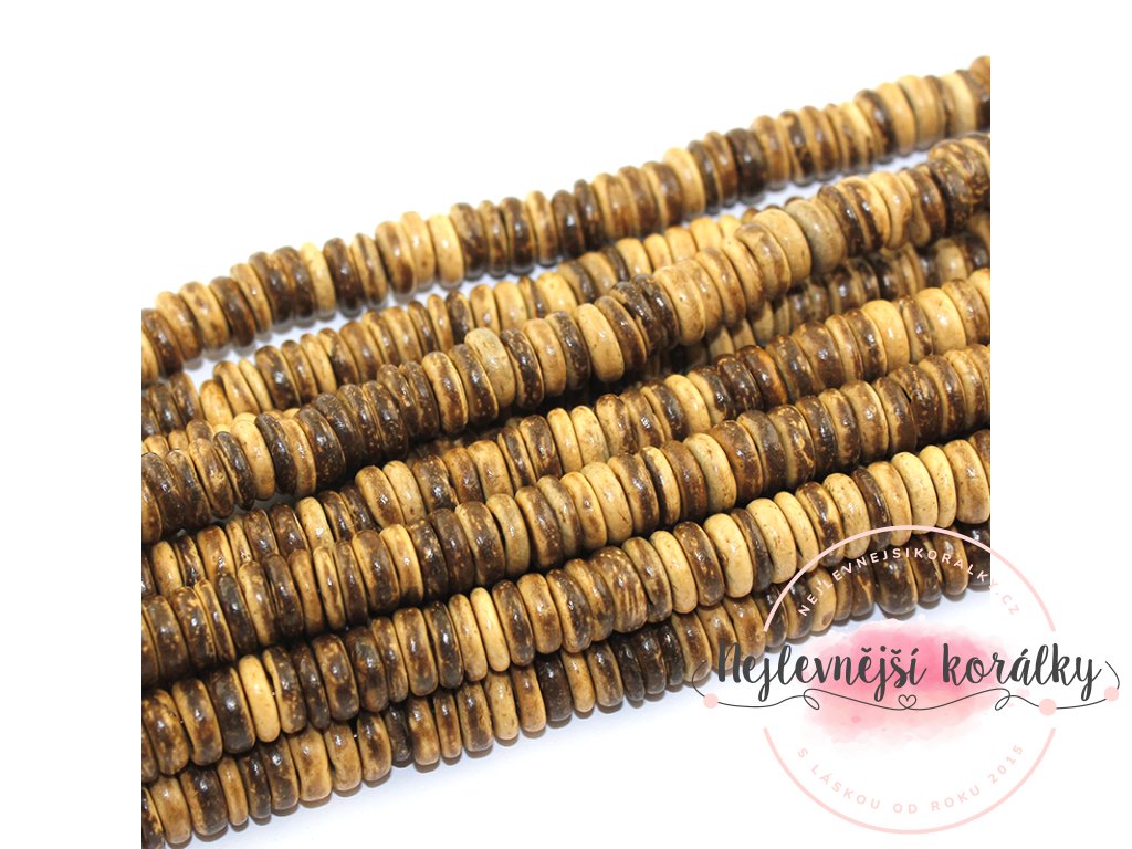 Korálky z kokosového dřeva - hnědé - 8 x 8 x 2 mm - 10 ks