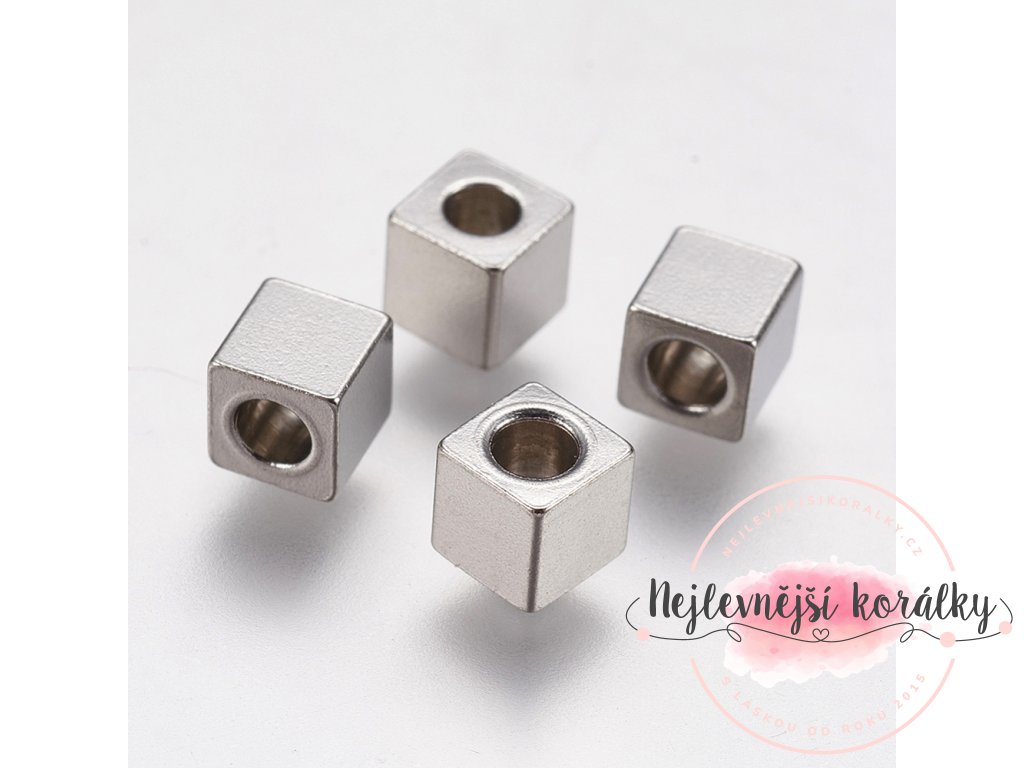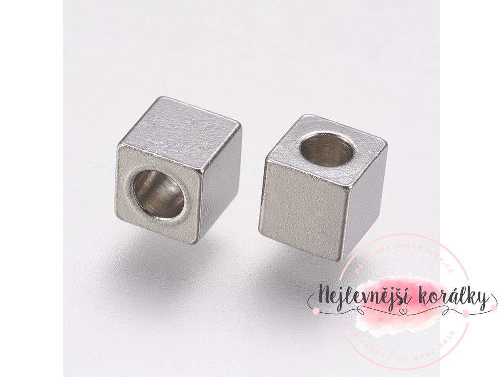 Korálek z nerezové oceli - kostka - 4 x 4 x 4 mm - 1 ks