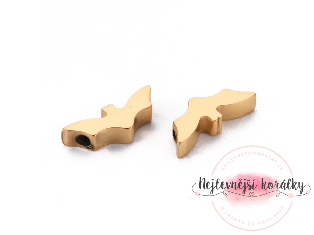 Korálek z nerezové oceli - netopýr - zlatý - 5 x 14 x 3 mm - 1 ks