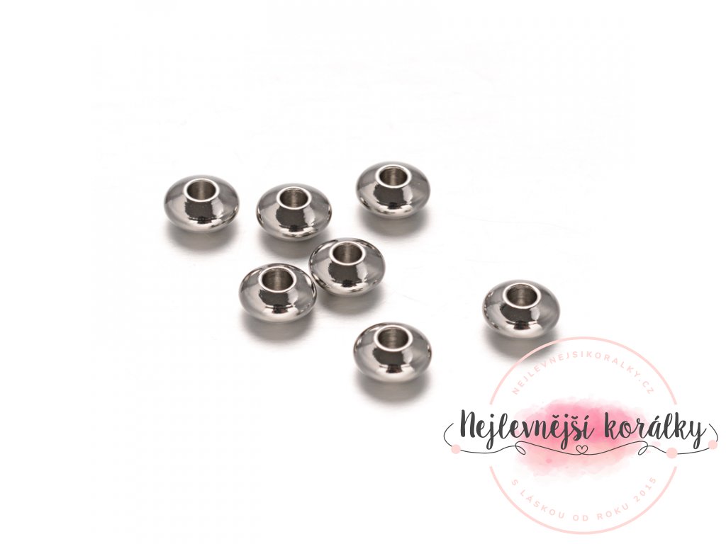 Korálek z nerezové oceli - platinový - 6 x 6 x 3 mm - 1 ks