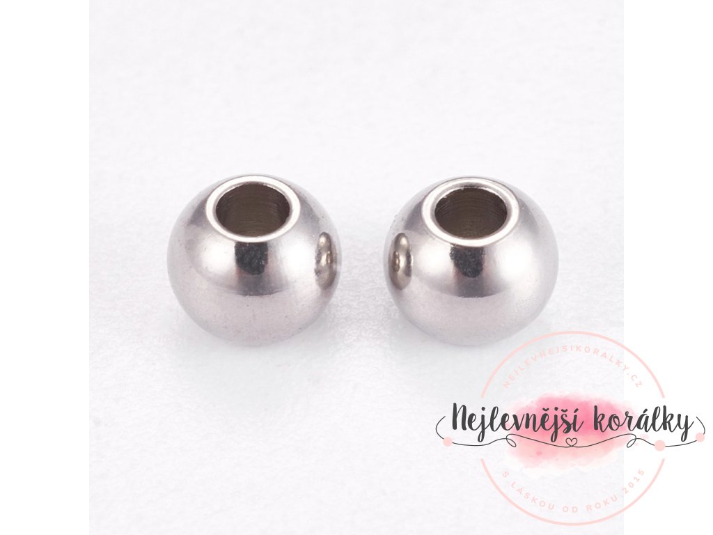Korálek z nerezové oceli se širokým průvlekem - platinový - 3 x 2 mm - 1 ks