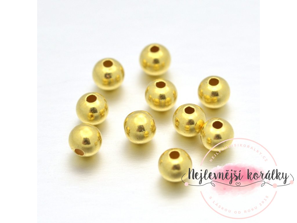 Pozlacený korálek ze stříbra o průměru 6 mm a s velikostí průvleku 1 mm.
