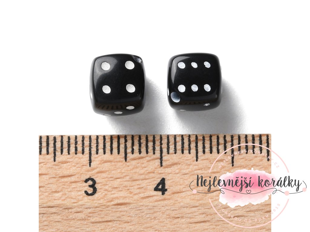 Akrylové korálky - hrací kostka - černá - 10 mm - 10 ks