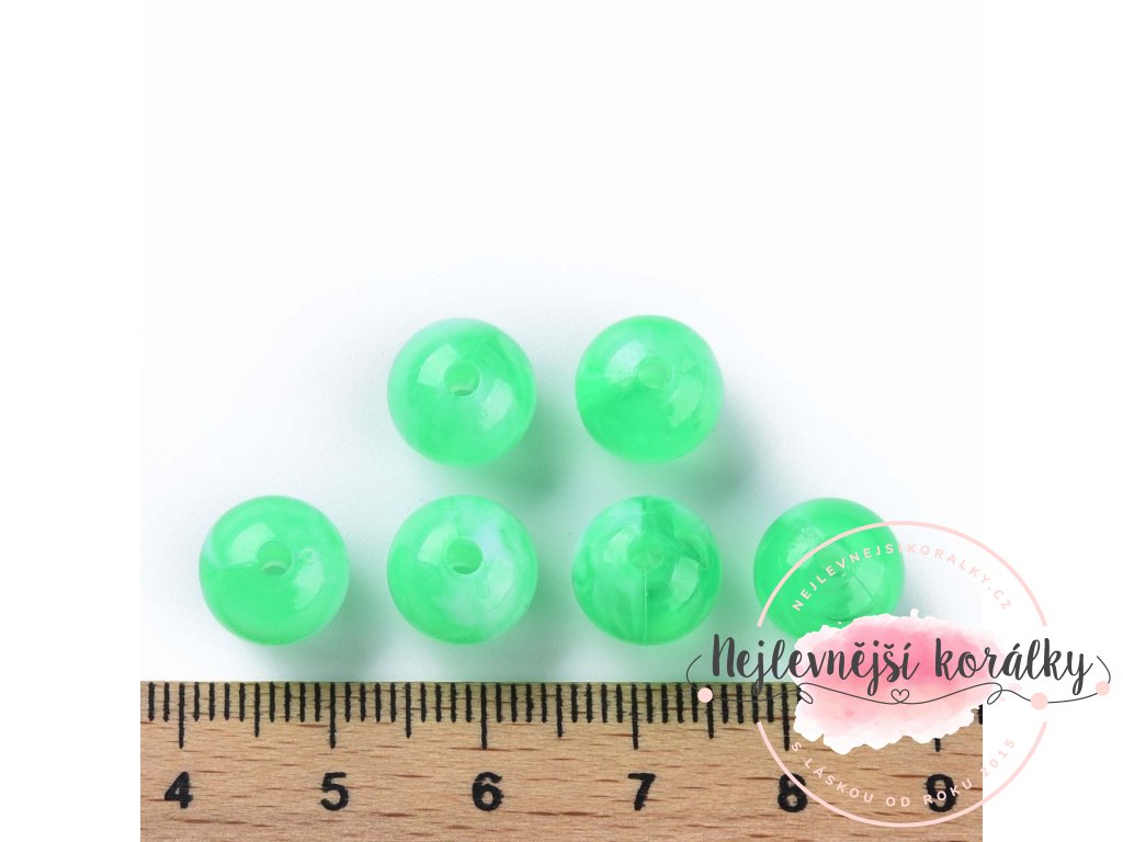 Akrylové korálky - zelené s bílým žíháním - ∅ 8 mm - 10 ks