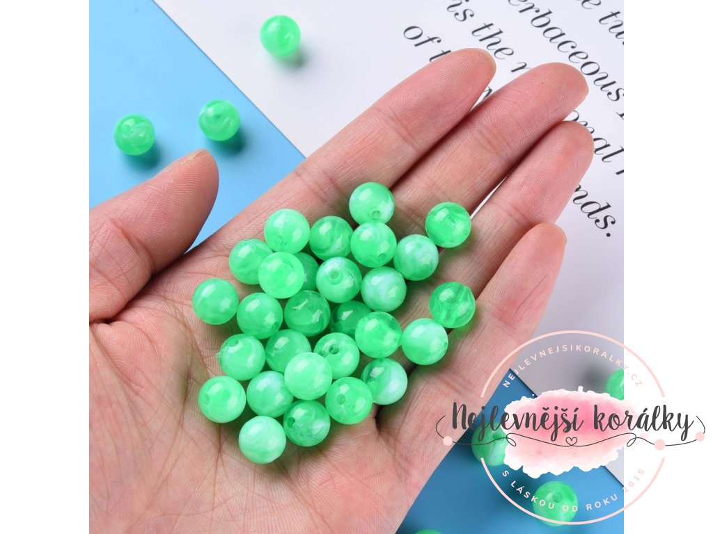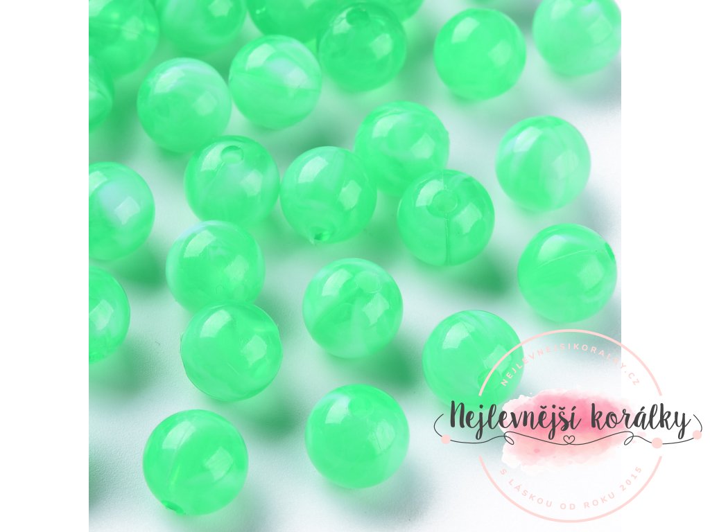Akrylové korálky v zeleném provedení o velikosti 10 mm.