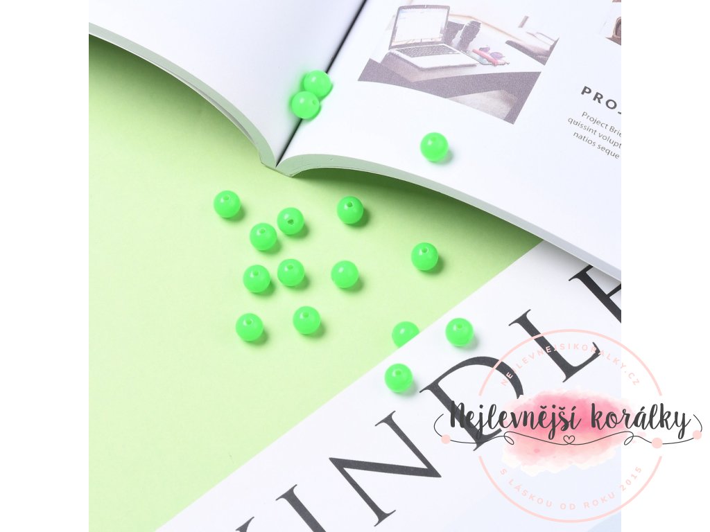 Akrylové neonové korálky - zelené - ∅ 8 mm - 10 ks