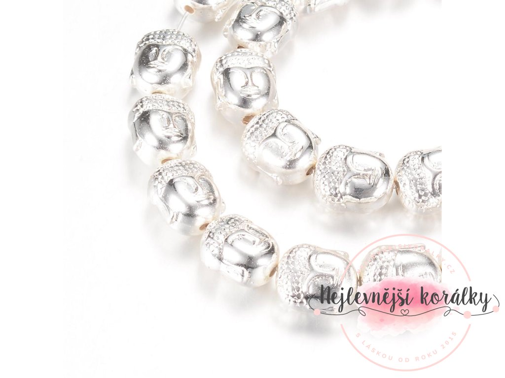 Korálky ze syntetického minerálu hematit ve tvaru hlavy Buddhy.