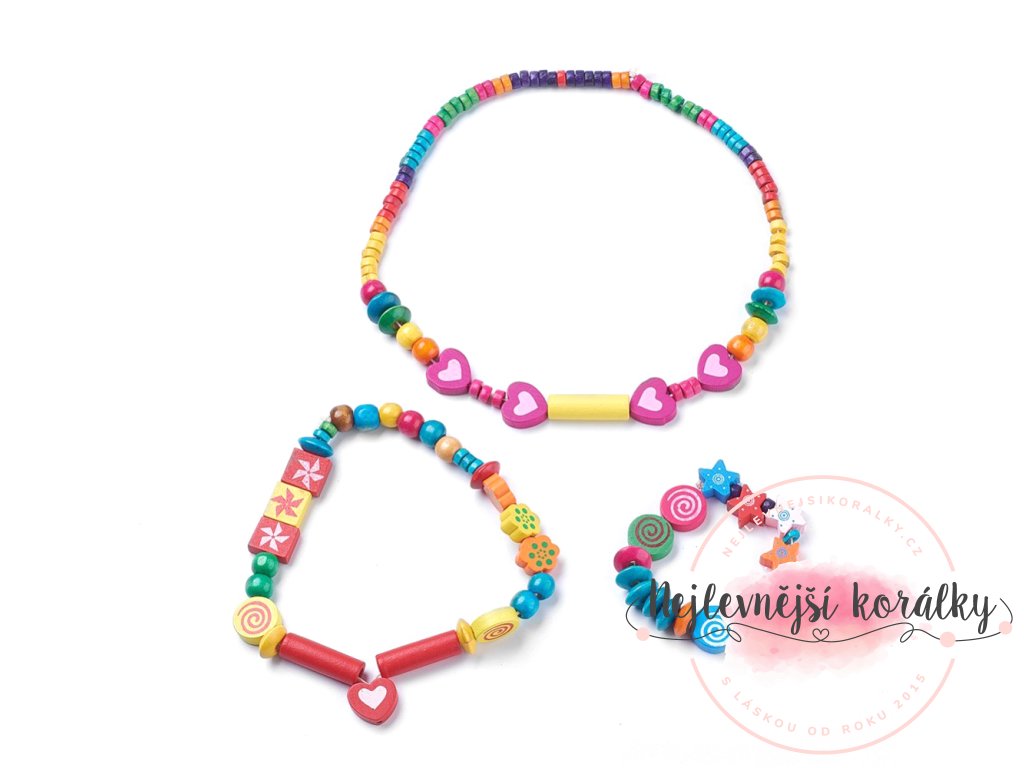 Dřevěné korálky pro děti - mix barev a tvarů - krabička
