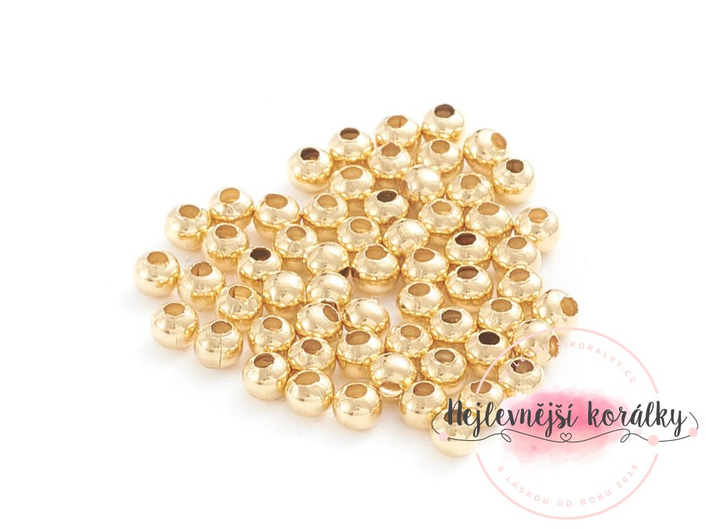 Korálek z nerezové oceli - dutý - zlatý - ∅ 2 mm - 1 ks