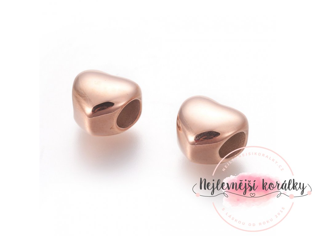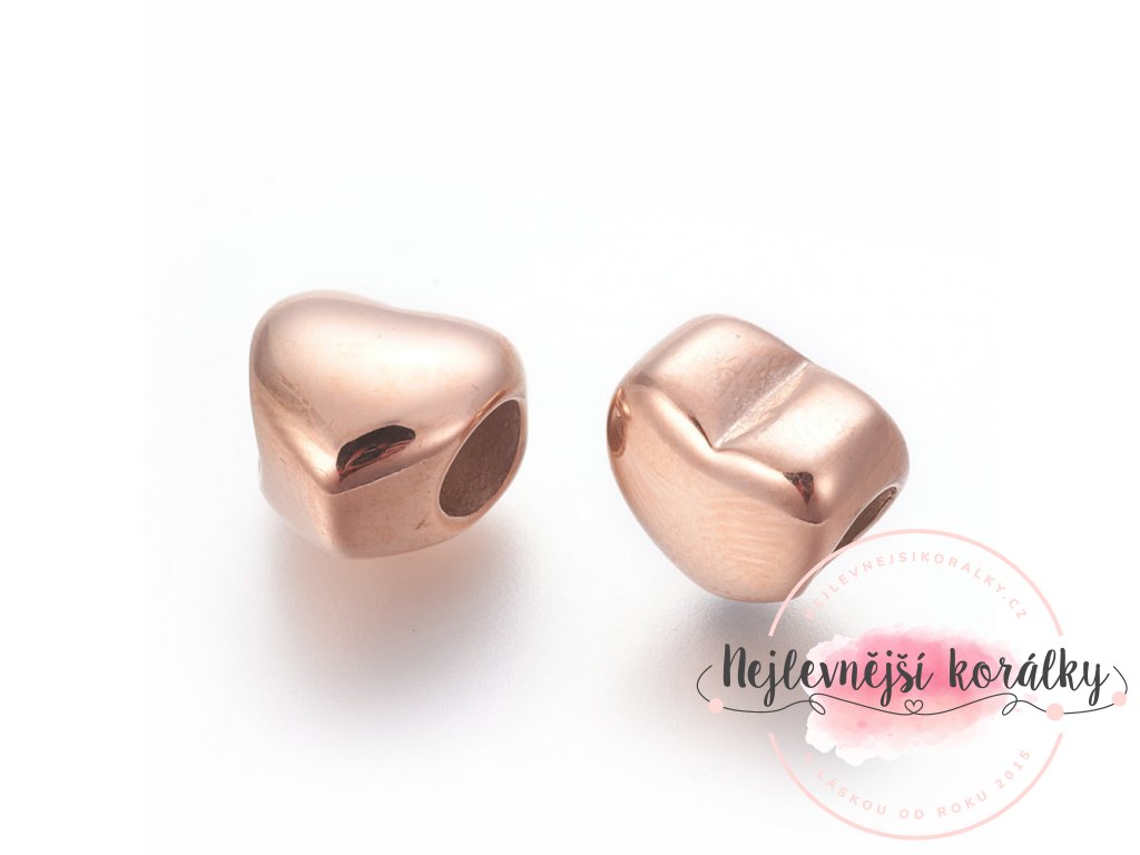 Korálek z nerezové oceli - srdce - růžově zlatý - 10 x 11 x 8 mm - 1 ks