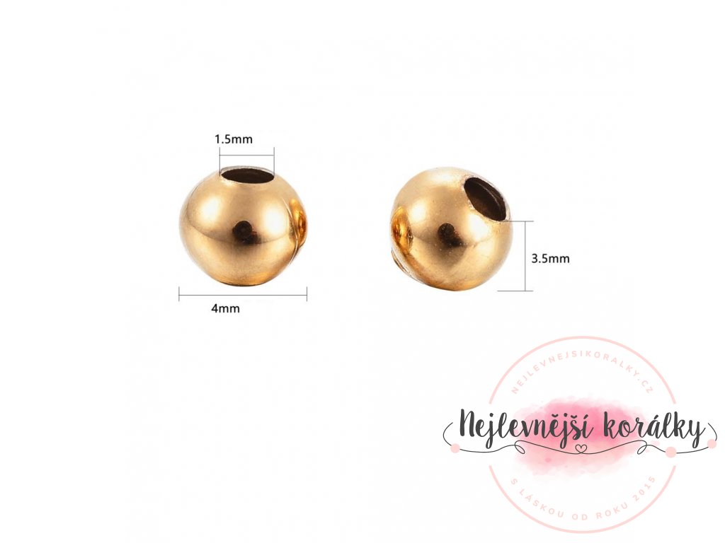 Korálek z nerezové oceli - zlatý - ∅ 4 mm - 1 ks